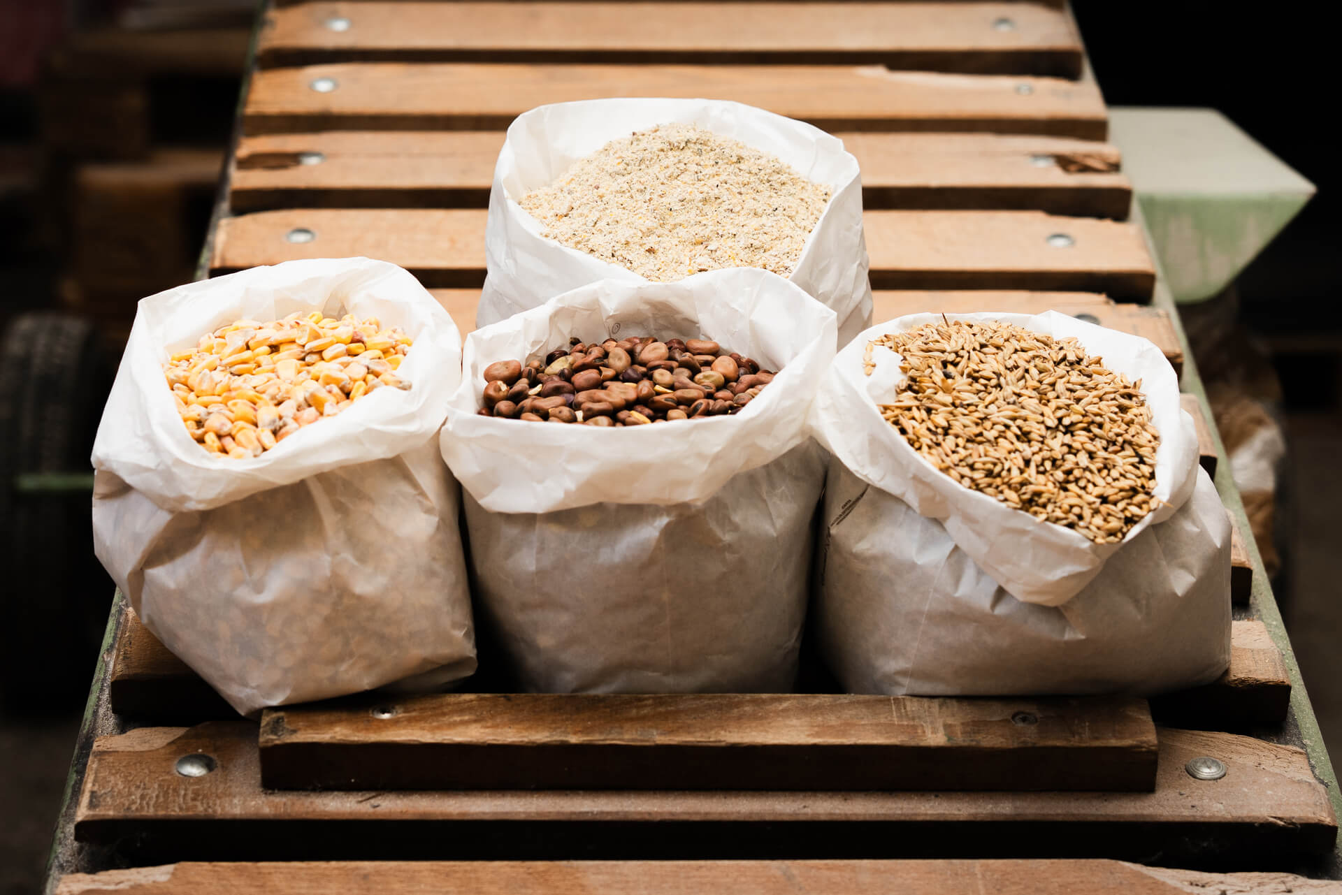 Cereali selezionati per l’alimentazione zootecnica, ideali per favorire la salute e la crescita degli animali da allevamento con fave, orzo, mais, semi di soia, grano duro e grano tenero.